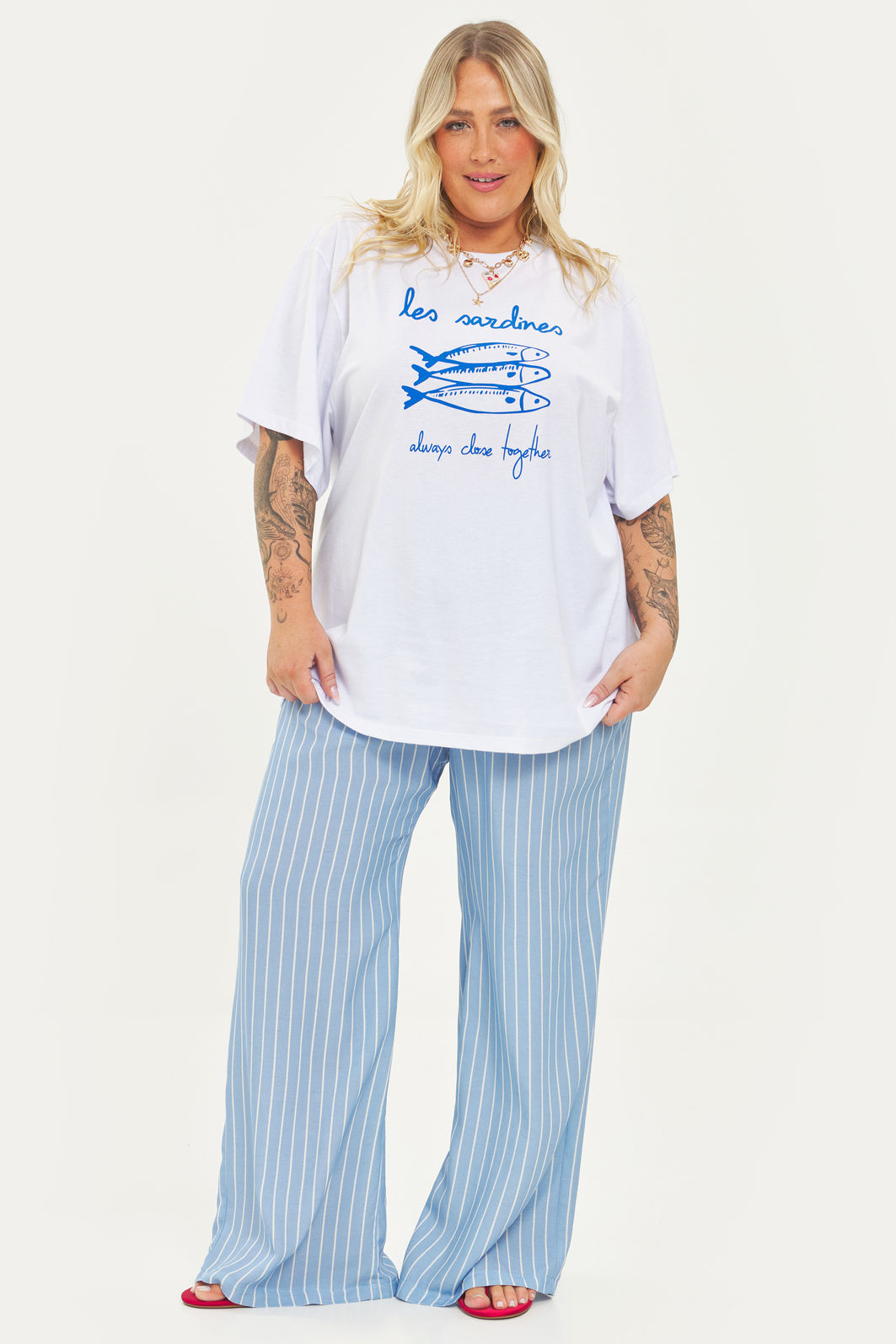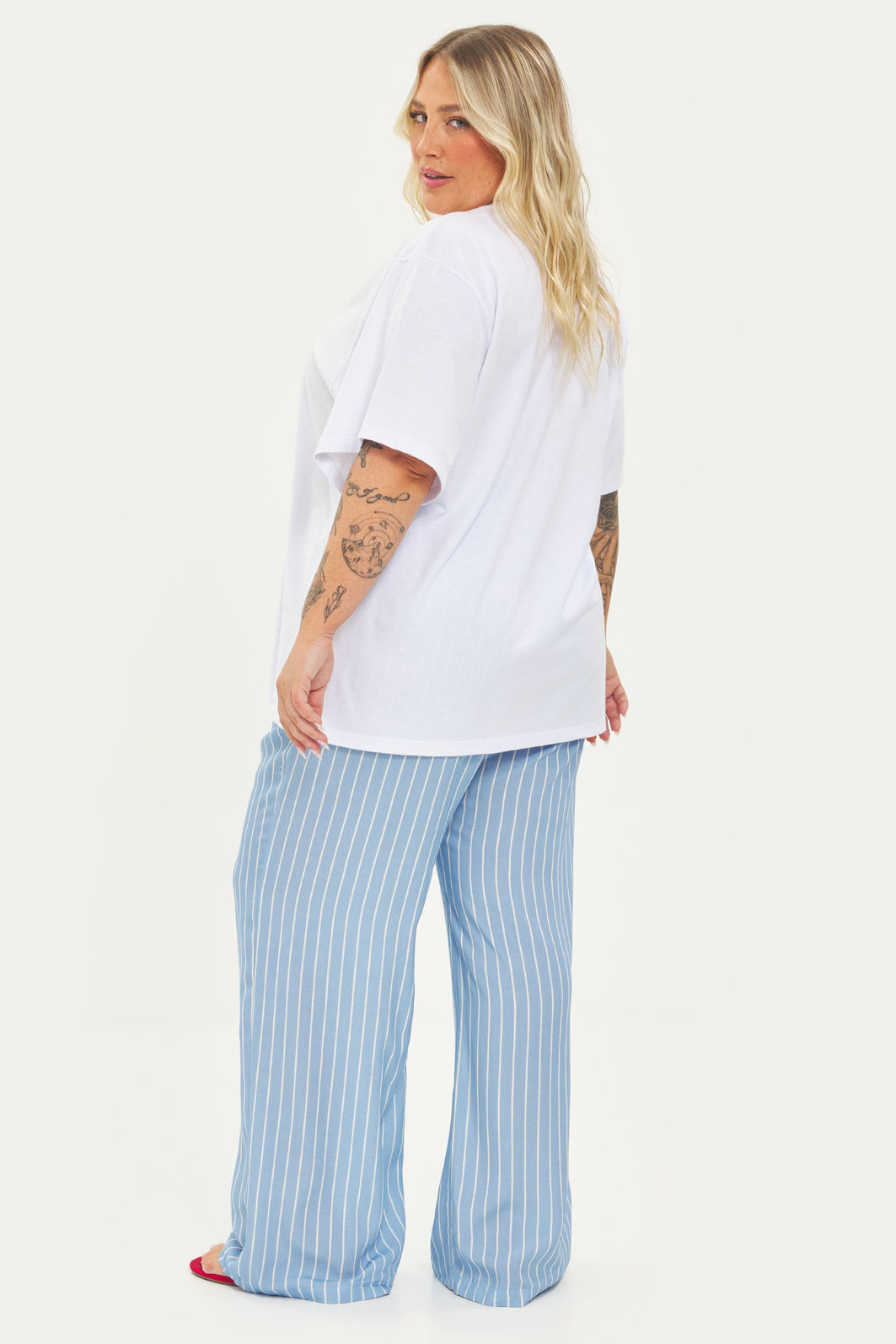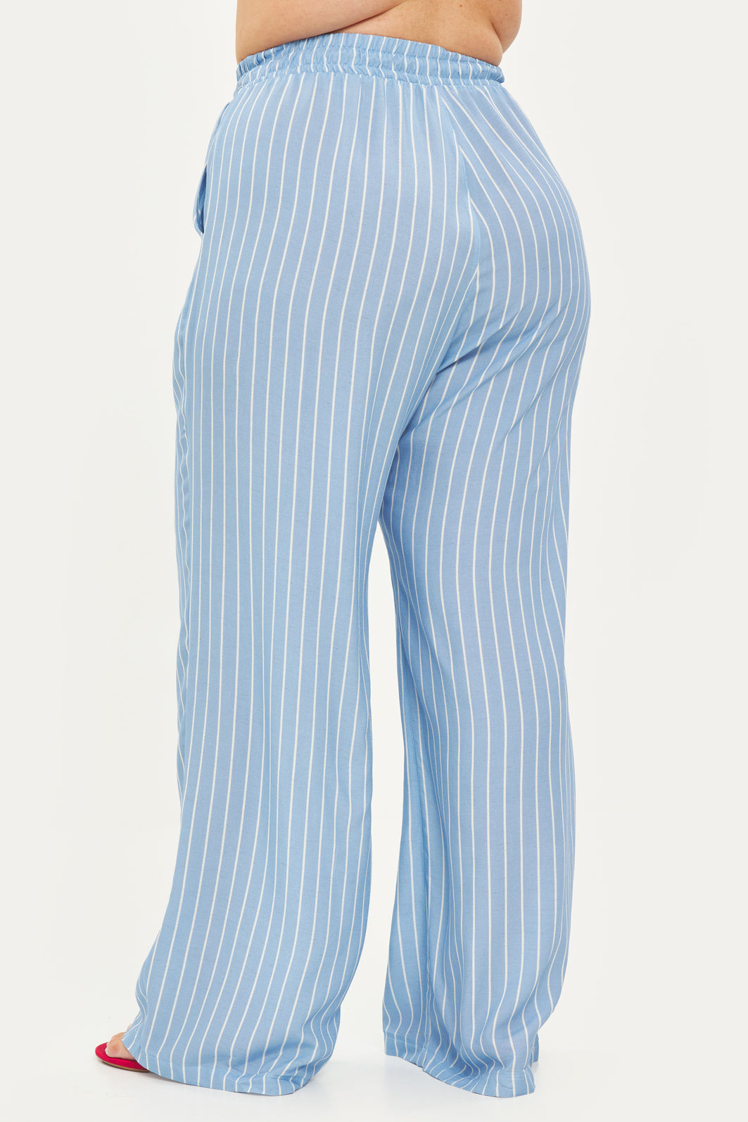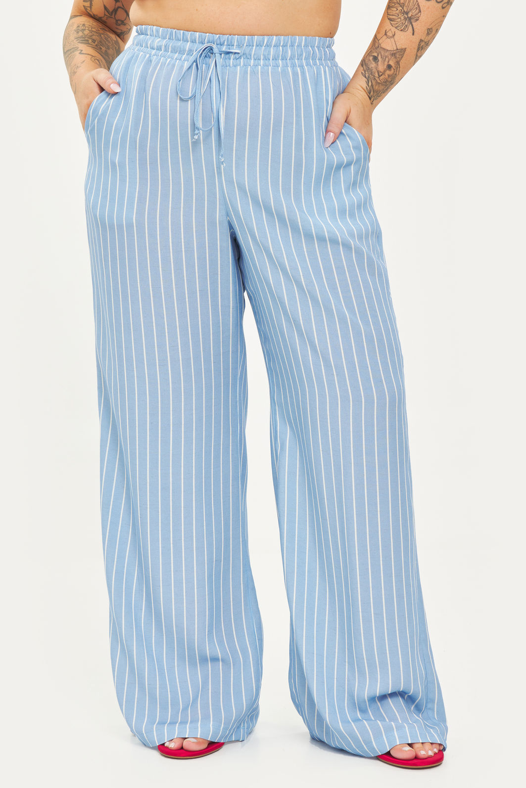 Calça feminina confeccionada em tecido fluído de viscose com linho. A peça de modelo pantalona possui cintura alta, cós total em elástico para melhor adaptação a diferentes corpos, cordão ajustável, bolsos frontais funcionais, shape solto e caimento reto. Com estampa exclusiva em cor contrastante. Modelagem especializada para corpos plus & curve size.