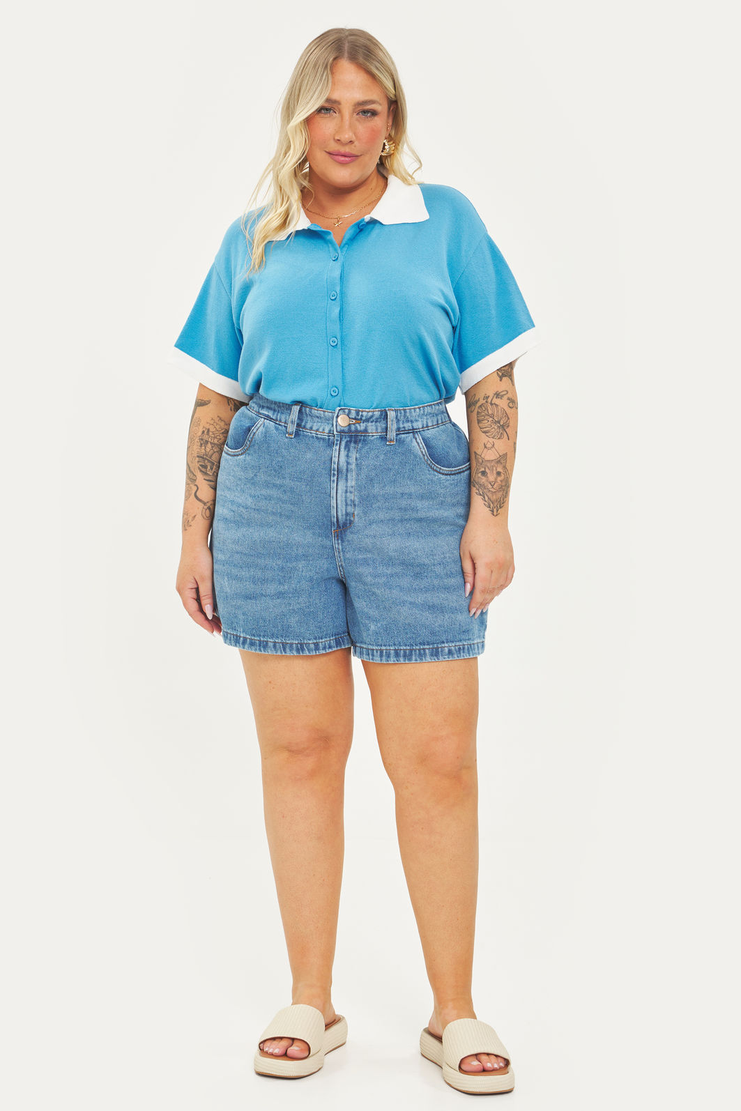 Camisa feminina confeccionado em tricot de excelente toque combinando fios de poliamida com viscose. A peça possui gola polo, abertura frente com fechamento por botões e shape reto. A alta qualidade do fio desse produto inibe a formação de pilling (bolinhas) na máquina de lavar. Modelagem especializada para corpos plus & curve size.