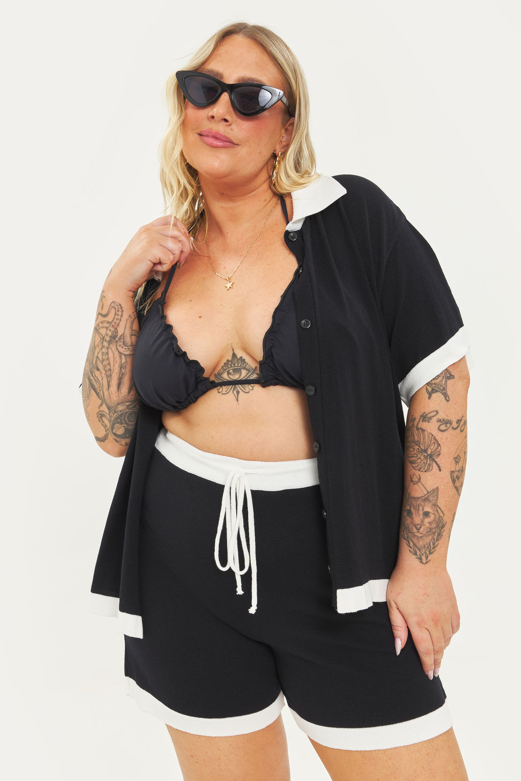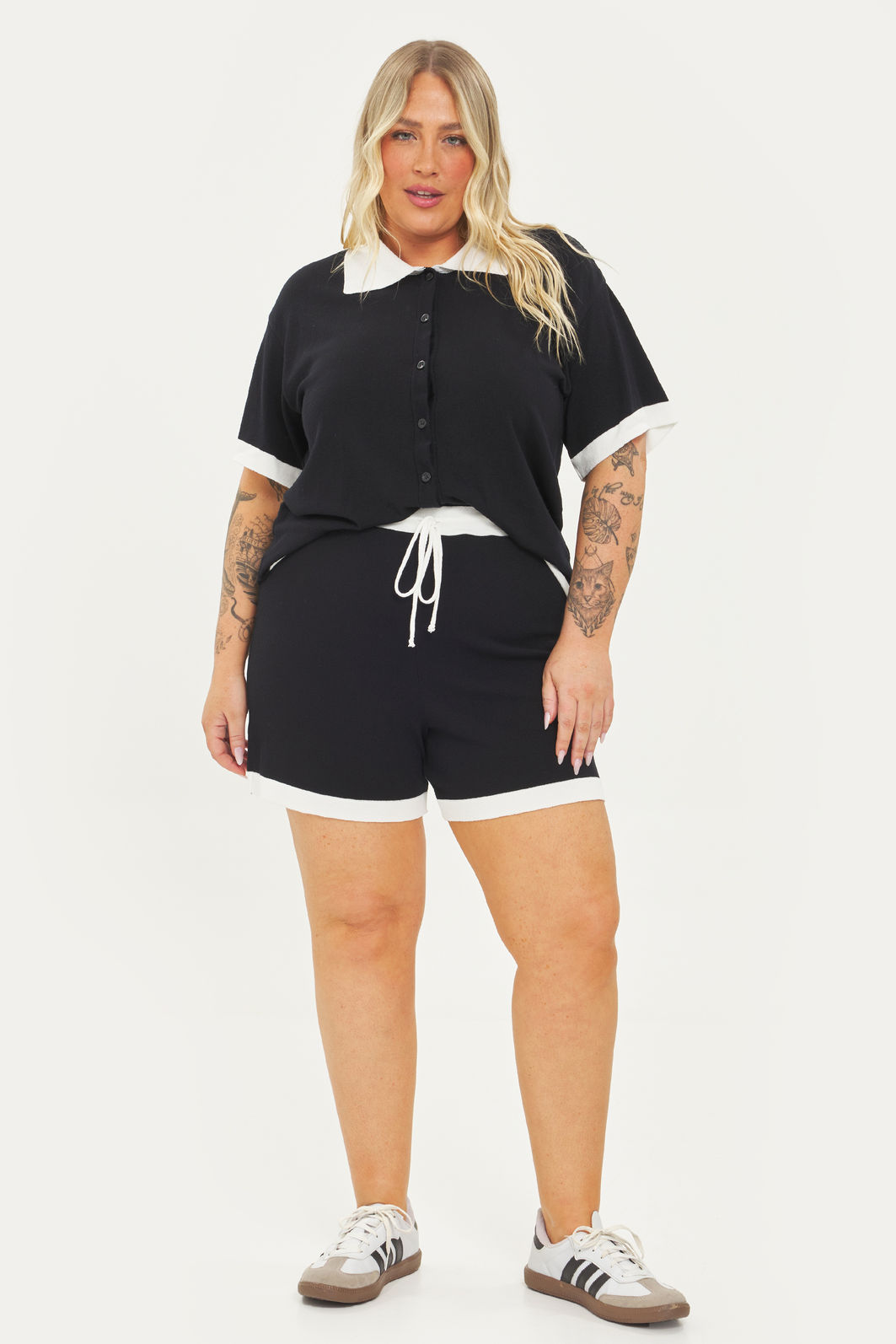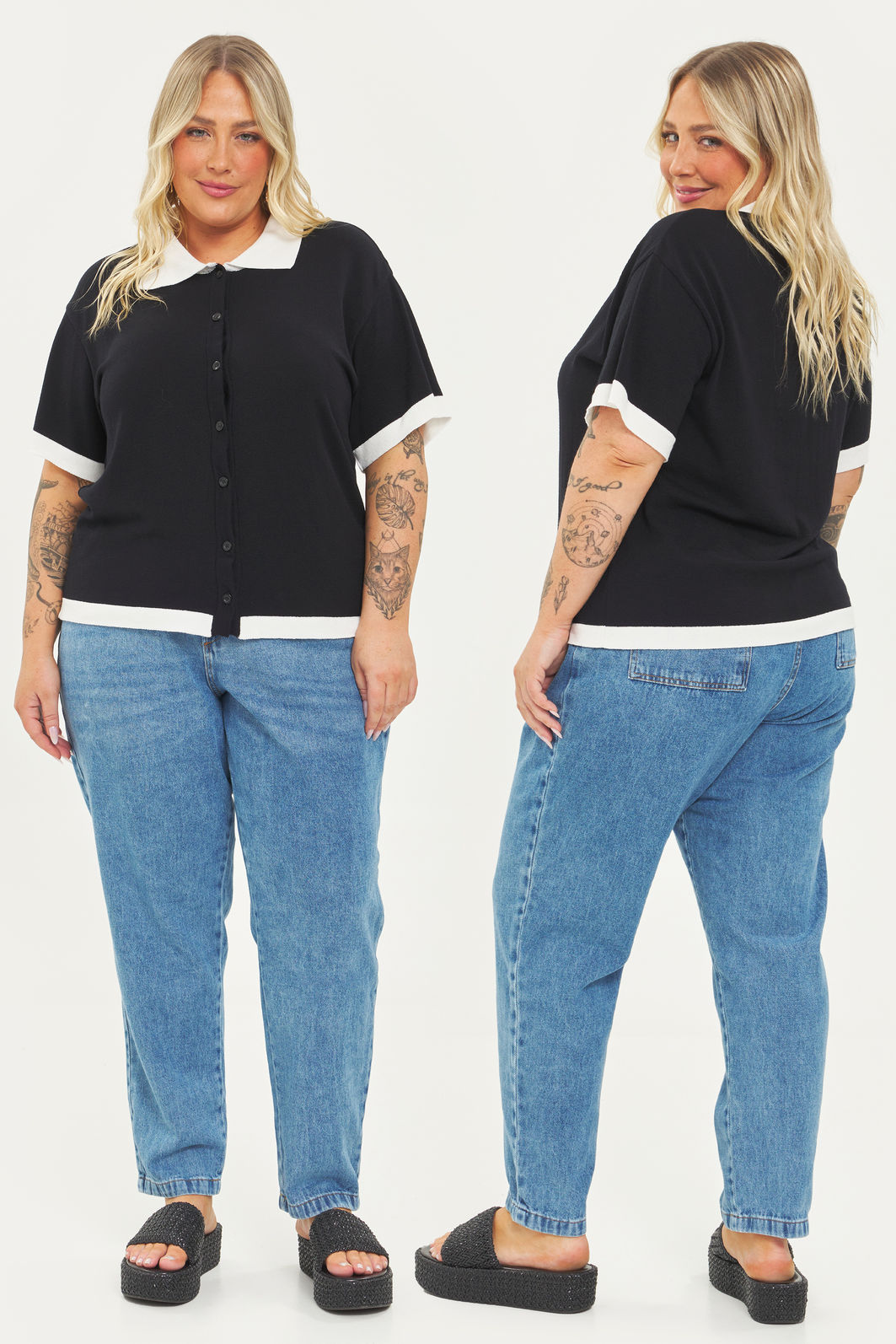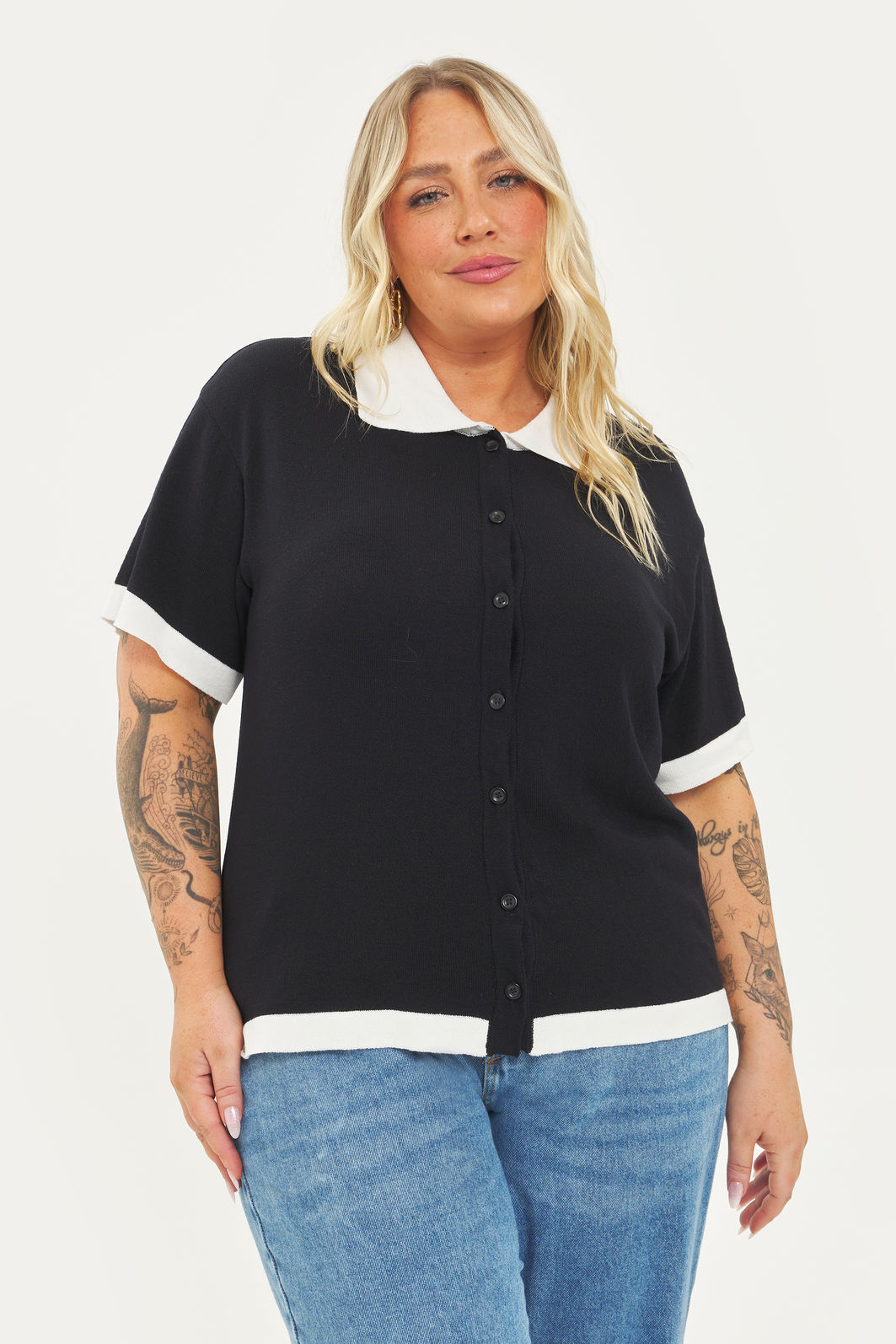 Camisa feminina confeccionado em tricot de excelente toque combinando fios de poliamida com viscose. A peça possui gola polo, abertura frente com fechamento por botões e shape reto. A alta qualidade do fio desse produto inibe a formação de pilling (bolinhas) na máquina de lavar.Modelagem especializada para corpos plus & curve size.