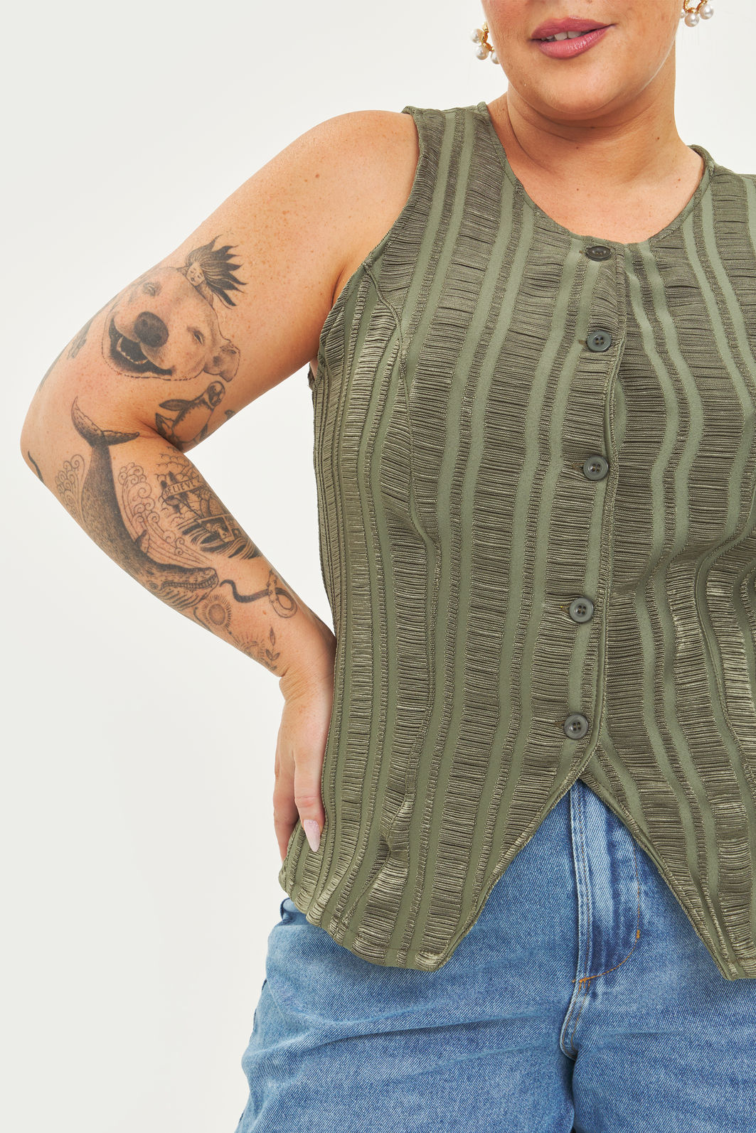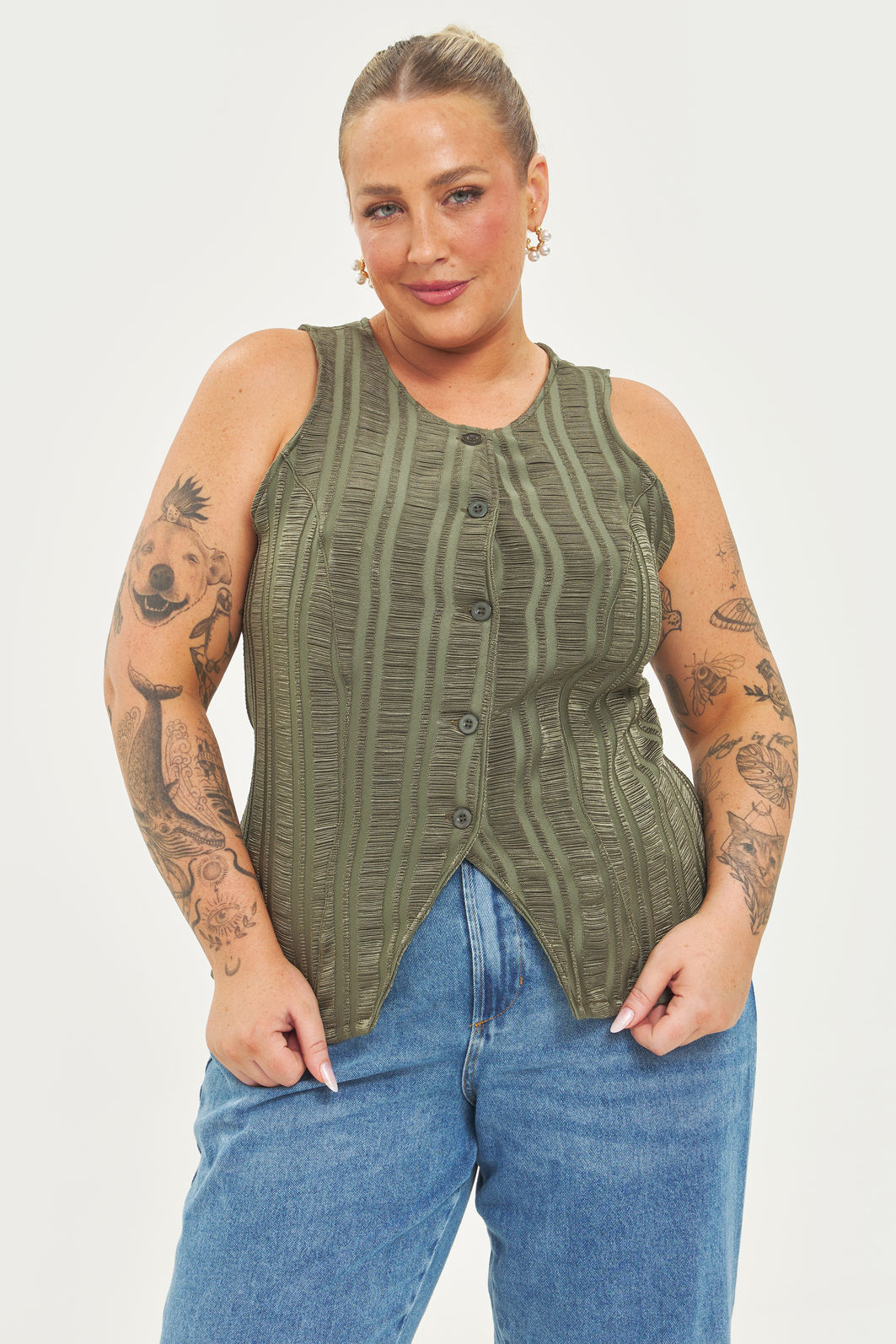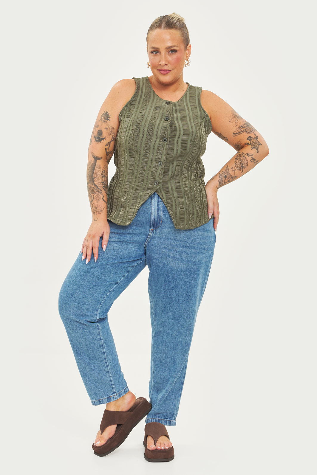hort feminino confeccionado em tecido trabalhado. A peça possui cintura alta, bolsos frontais, cós traseiro com elástico para melhor adaptação a diferentes corpos e cós frontal entretelado para não ficarem marcas de dobra conforme o uso, passante para cinto, comprimento curto, fechamento frontal por botão e zíper. Modelagem especializada para corpos plus & curve size.