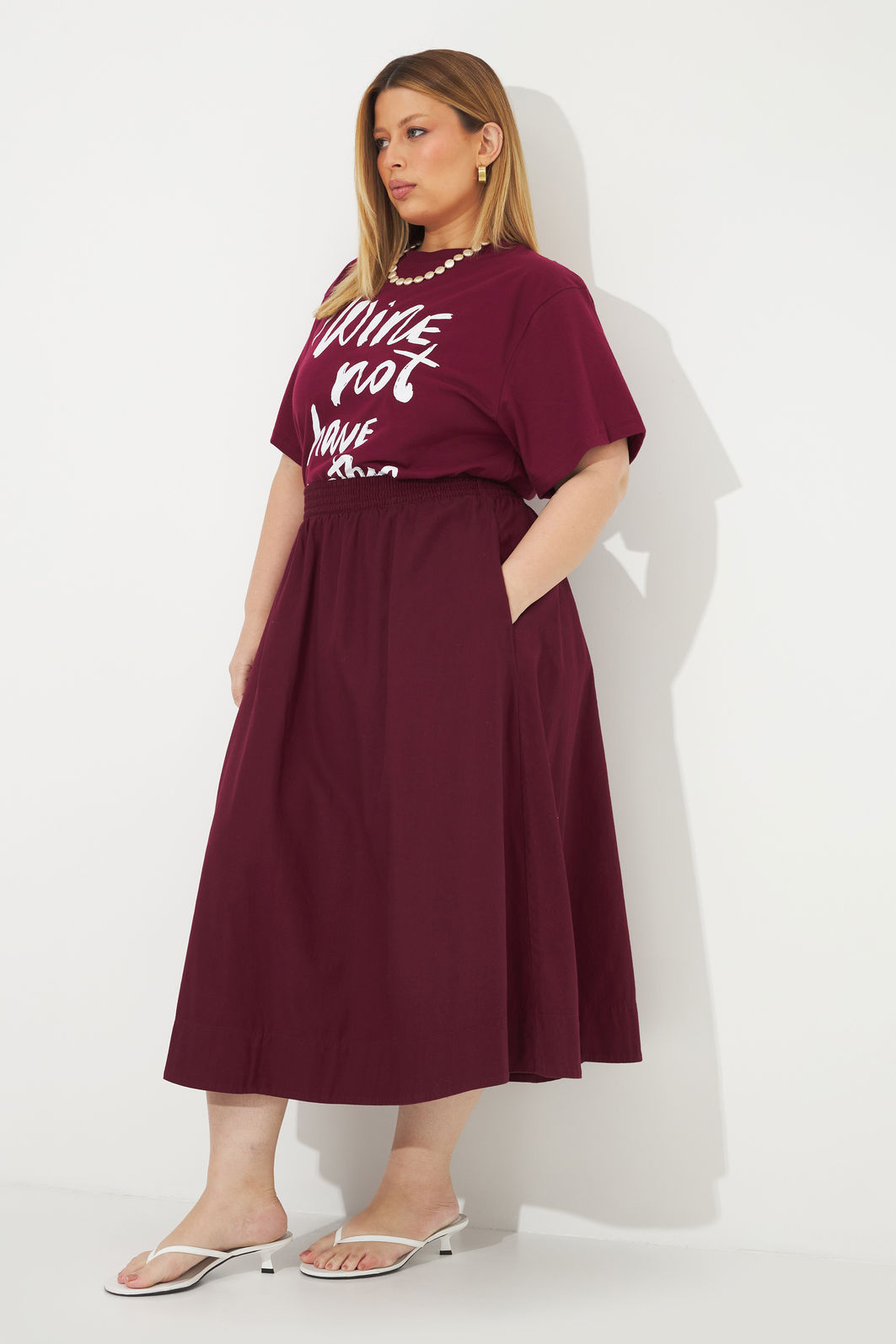 Saia midi feminina confeccionada em sarja com processo em lavanderia. A peça possui comprimento midi, shape evasê, cós total com elástico para melhor adaptação a diferentes corpos, bolsos frontais funcionais e detalhe de barra. Modelagem especializada para corpos plus & curve size.