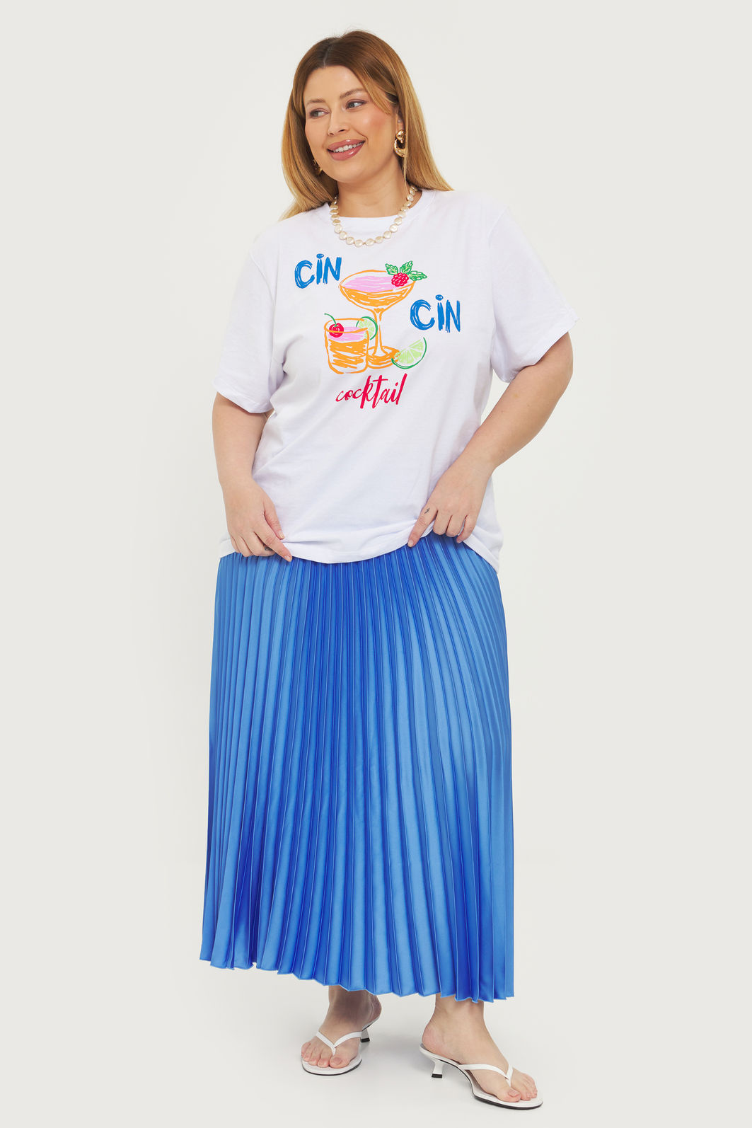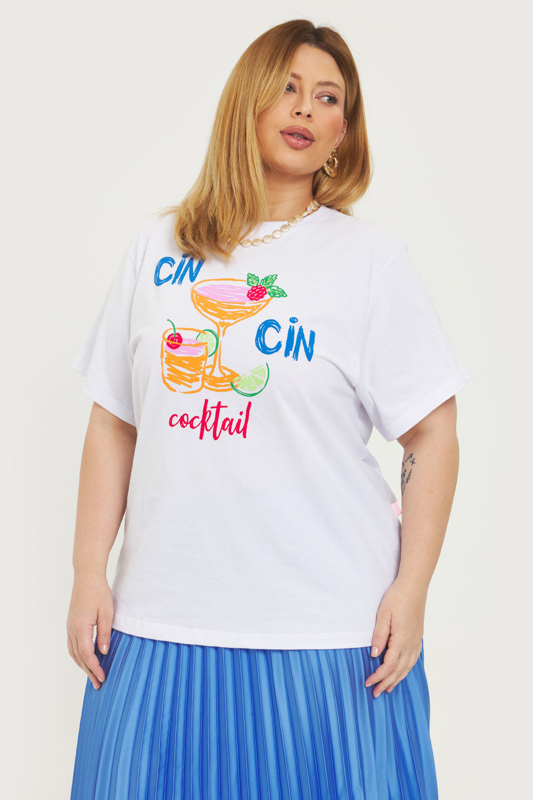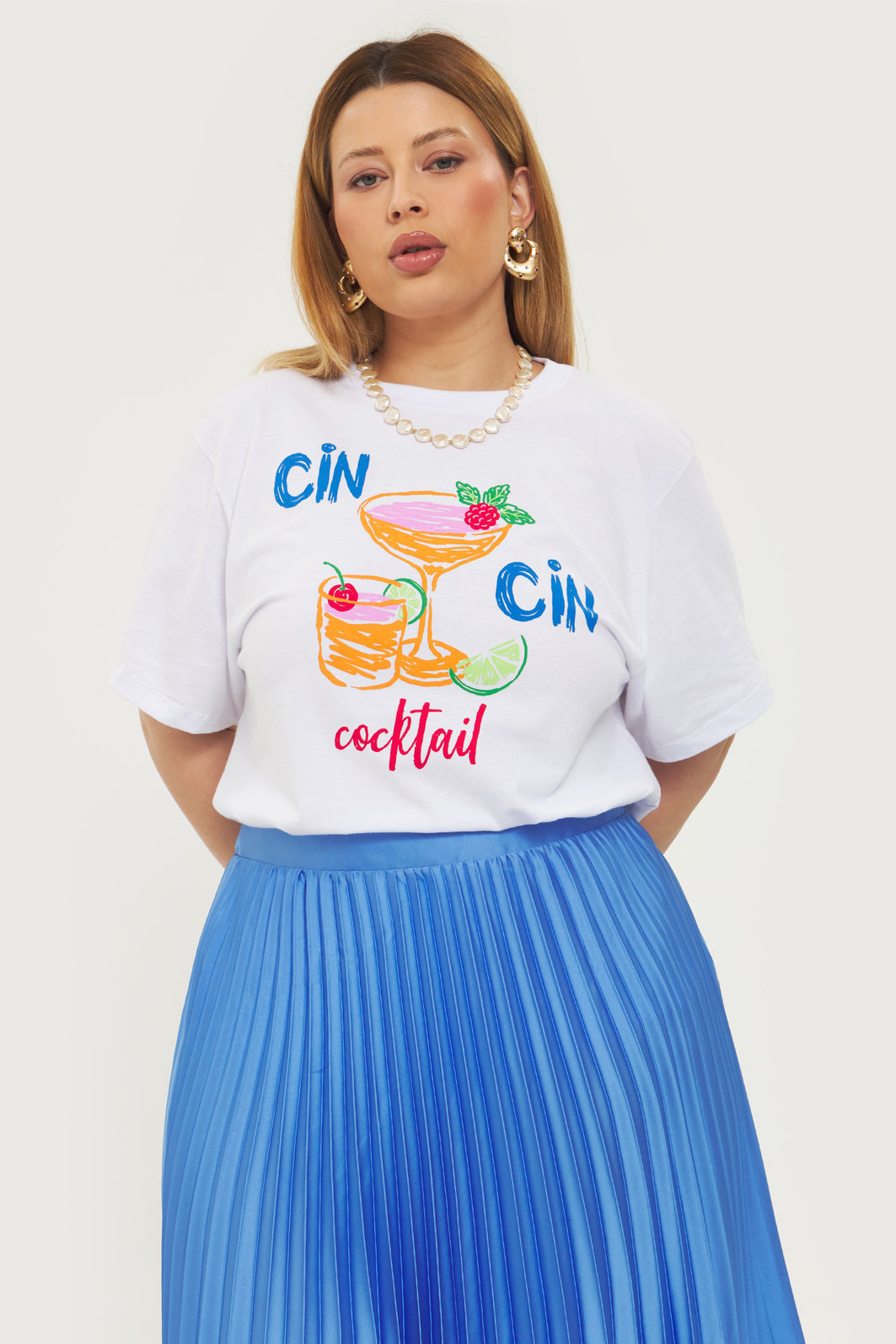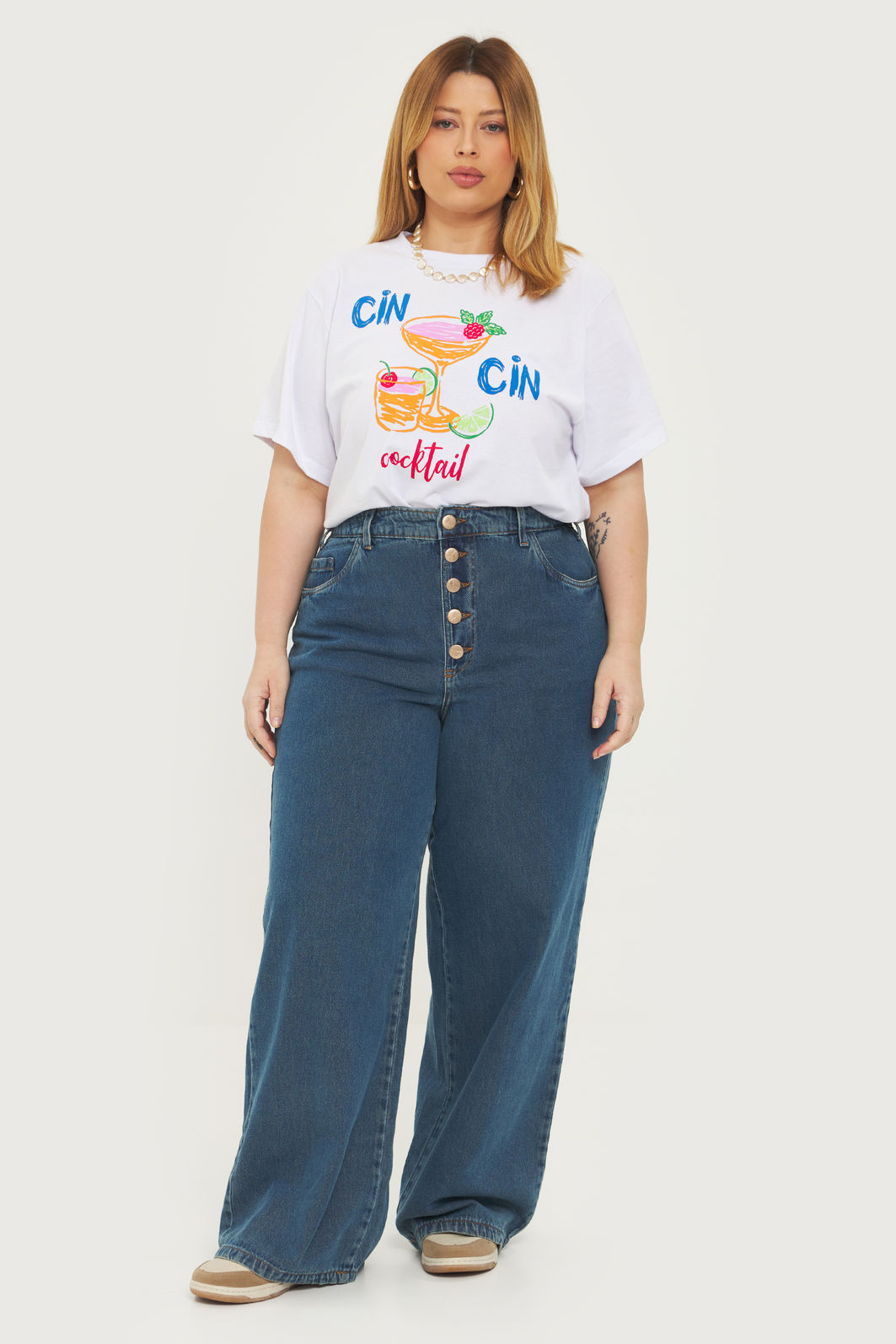 T-shirt feminina confeccionada em malha de algodão. A peça possui decote redondo em ribana, mangas curtas, estampa frontal em silk, caimento reto, shape solto e acabamento em bainha. Modelagem especializada para corpos plus & curve size.
