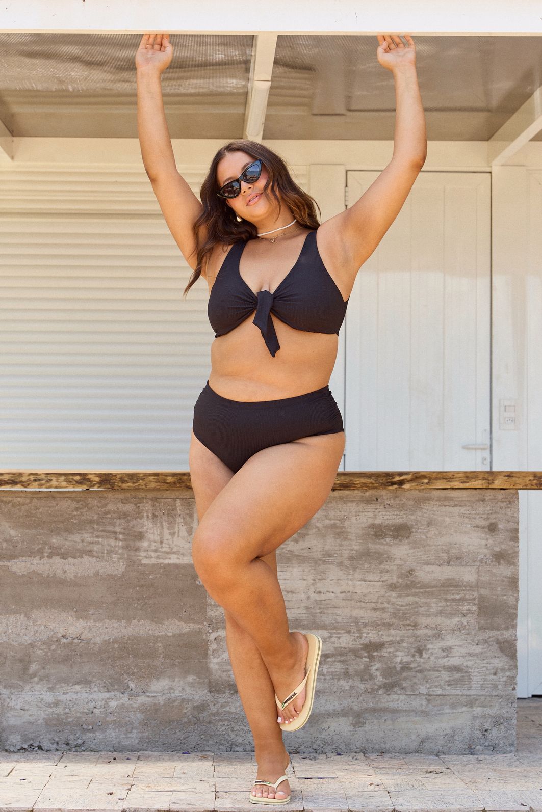 Top de biquini feminino confeccionado em malha canelada de poliamida com elastano. A peça possui decote V, frente dupla para maior sustentação, amarração frontal ajustável em formato de laço tecnologia FPS 50+. Modelagem especializada para corpos plus & curve size.